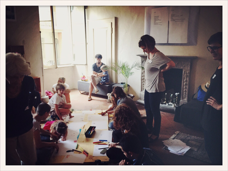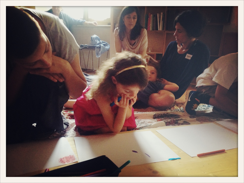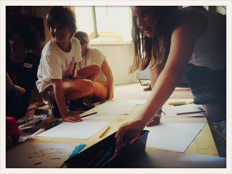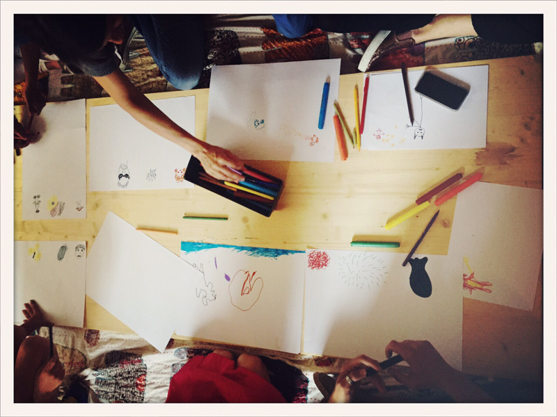 h 17 picnic di bambini che disegnano altri bambini e mangiano piccole torte di mele con Eva Laudace